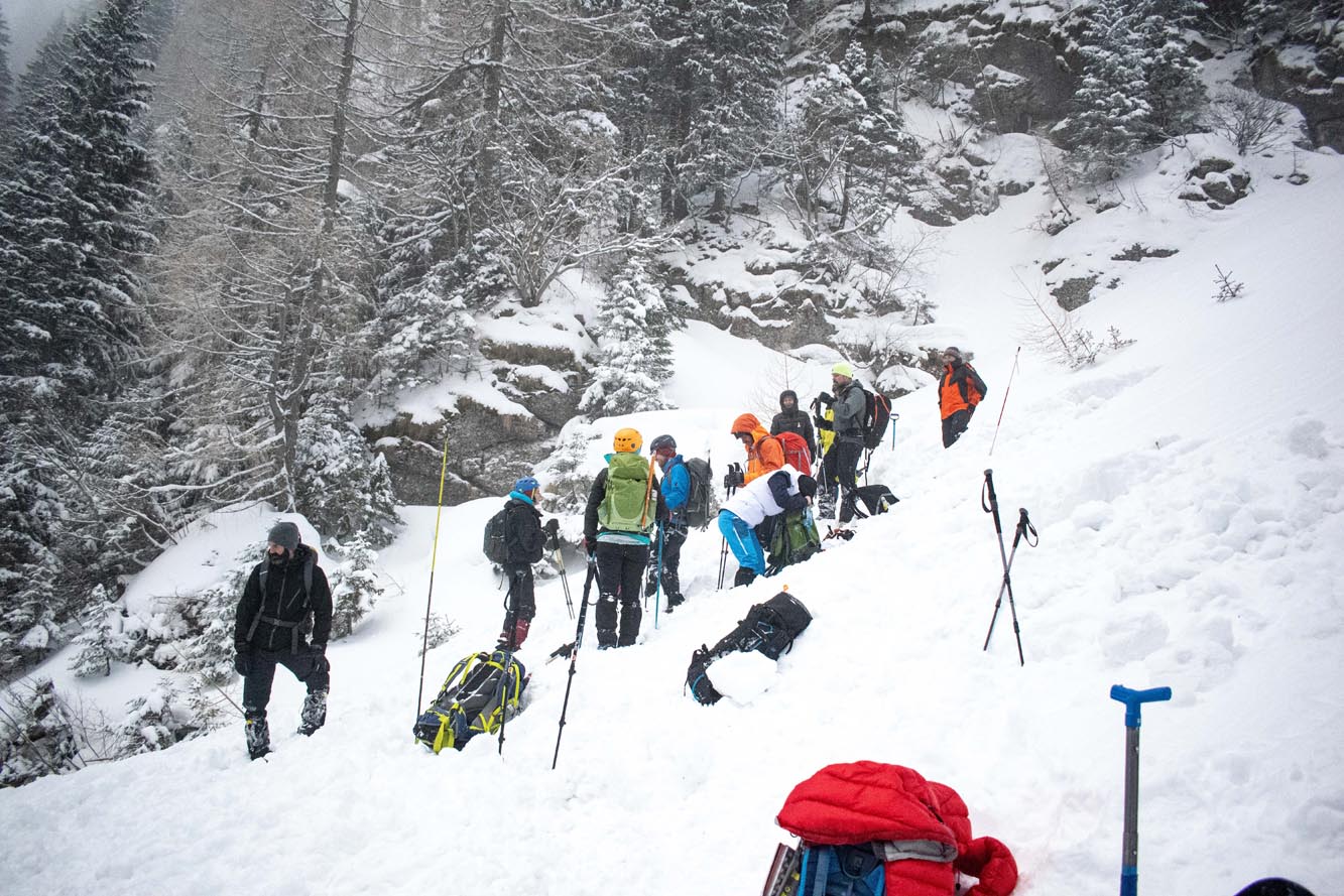 – Căutarea în avalanșă cu DVA-ul, sonda și lopata;